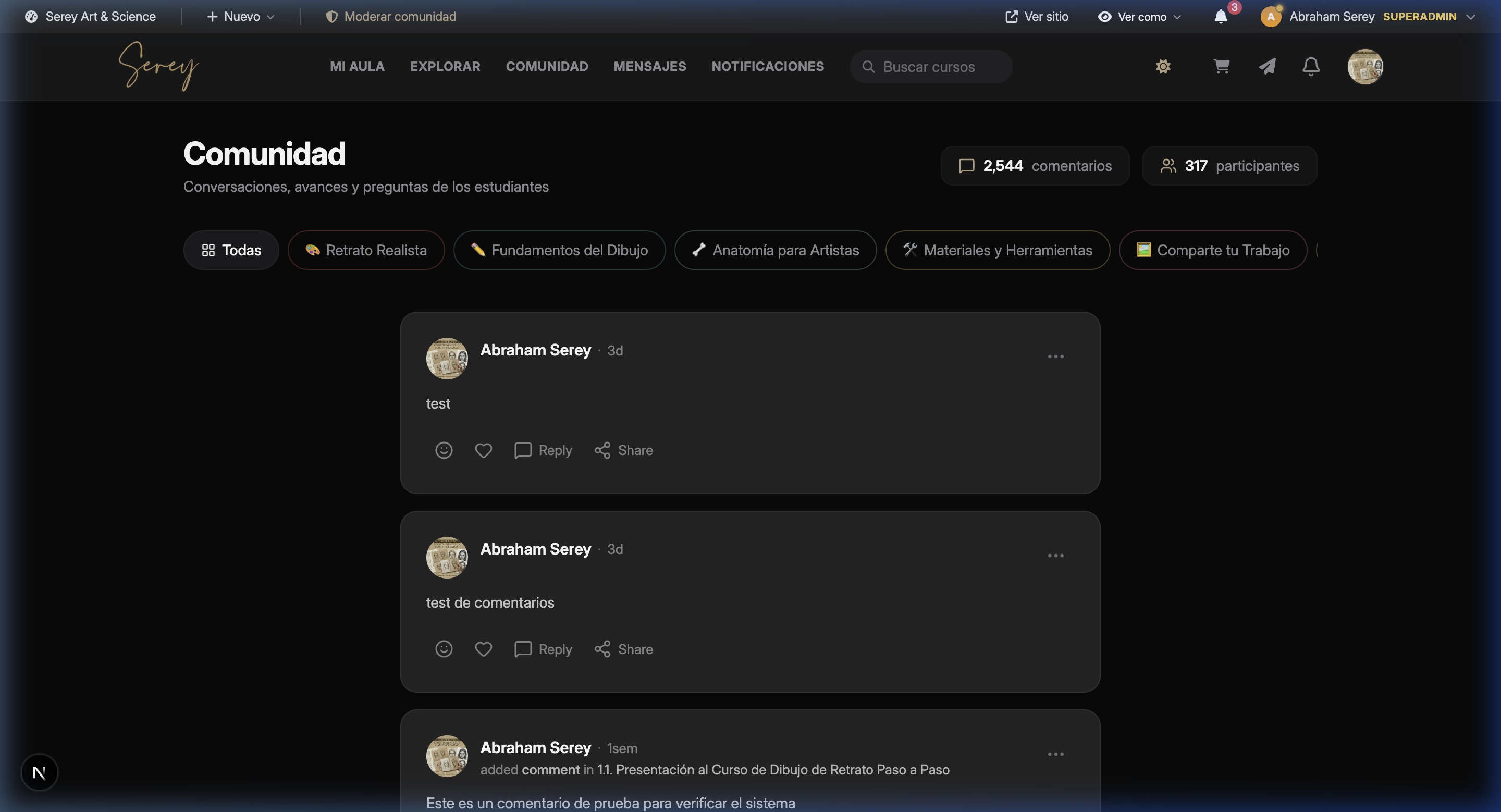 Feed propio, categorías, reacciones y comentarios. Tu espacio, no el de otra red social.