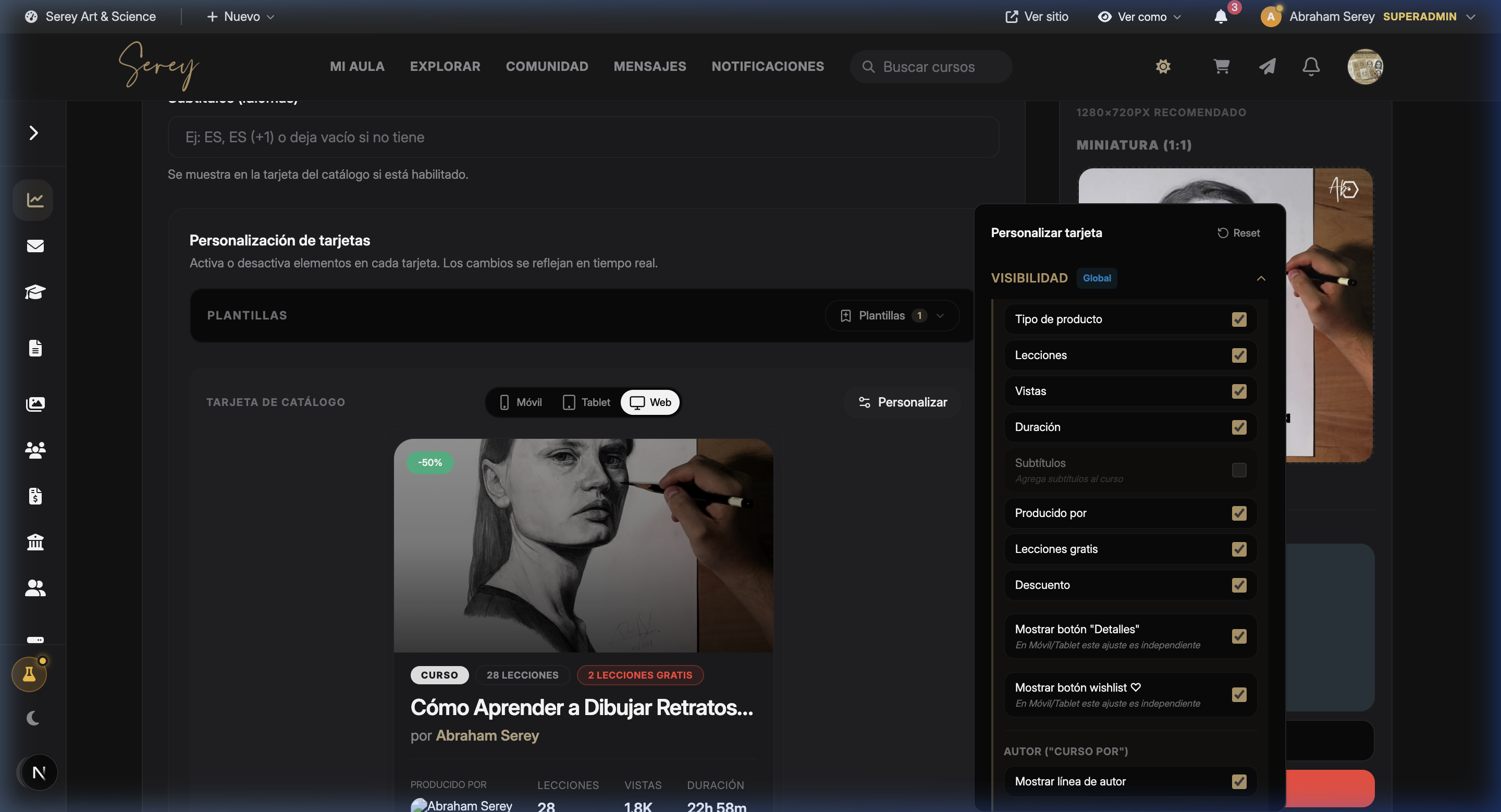 Tu logo, tus colores, tu dominio. Una academia que se ve exactamente como tú decides, no como una plantilla.